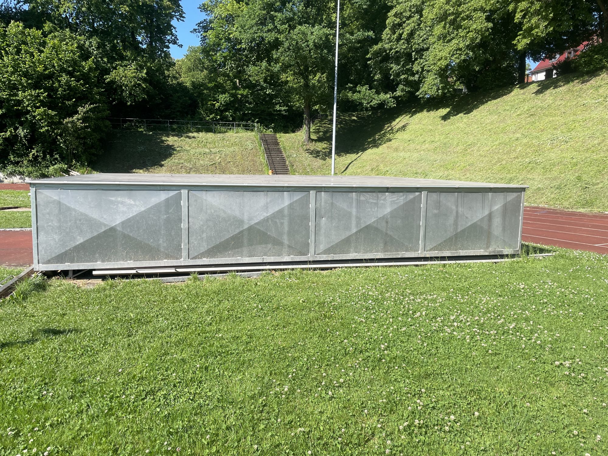 Die Abdeckhaube hat die Maße L= 7,30 m und B= 5,80 m. Sie befindet sich aktuell im Stadion der Turnerschaft Göppingen e.V. und müsste von dort abgeholt werden (Nördliche Ringstr. 125, 73033 Göppingen).
