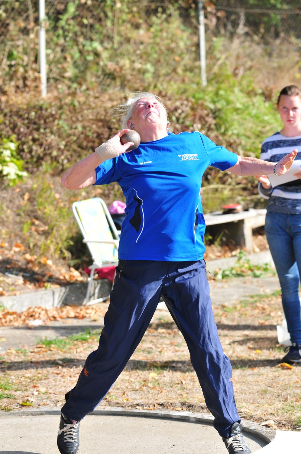 Einen bärenstarken Eindruck hinterließ Hartwig Vöhringer von der LG Rems-Welland. Mit 31,08 m beim Hammerwerfen, 11,95 m mit der Kugel, 44,27 m mit dem Diskus, 44,08 m mit dem Speer und 13,78 m mit dem 9 kg schweren Stein blieben für ihn in der M 60 stolze 3586 Punkte.
