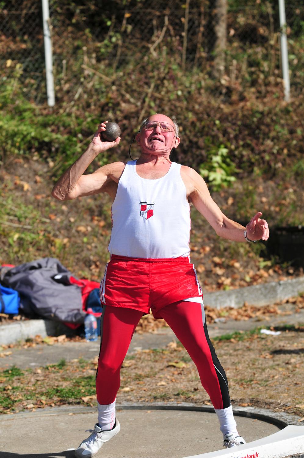 In Igersheim in der Nähe von Bad Mergentheim wurden am vergangenen Wochenende die letzten Stadionmeisterschaften dieser Saison ausgetragen. Bei angenehmen Temperaturen gelang es manchem der 26 Senioren und 6 Seniorinnen aus Baden und Württemberg immer wieder, die aktuellen Bestleistungen abzurufen, obwohl wie in Mehrkämpfen vorgeschrieben lediglich 3 Versuche des Kugelstoßens, Hammer-, Gewicht-, Speer- und Diskuswerfens zur Verfügung standen.