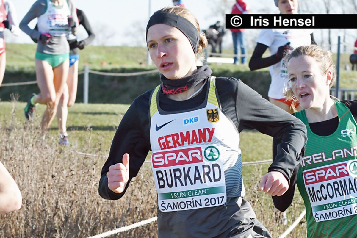 Für das beste deutsche Resultat bei den Aktiven hat am Sonntag bei der Cross-EM Elena Burkard von der LG farbtex Nordschwarzwald gesorgt. Mit einem starken fünften Rang überzeugte sie im Frauen-Rennen. Die derzeit beste deutsche Crossläuferin startete verhalten in den Wettbewerb und schloss erst spät zu den vorderen Läuferinnen auf. Am Ende lieferte sie sich mit der Rumänin Roxana Barca (auch 27:21 min) einen engen Kampf um Platz vier, bei dem sie sich nur knapp geschlagen geben musste. Zweitschnellste deutsche Läuferin war Fabienne Amrhein von der MTG Mannheim (28:18 Minuten) auf Rang 28. Das DLV-Team belegte Platz sechs.
