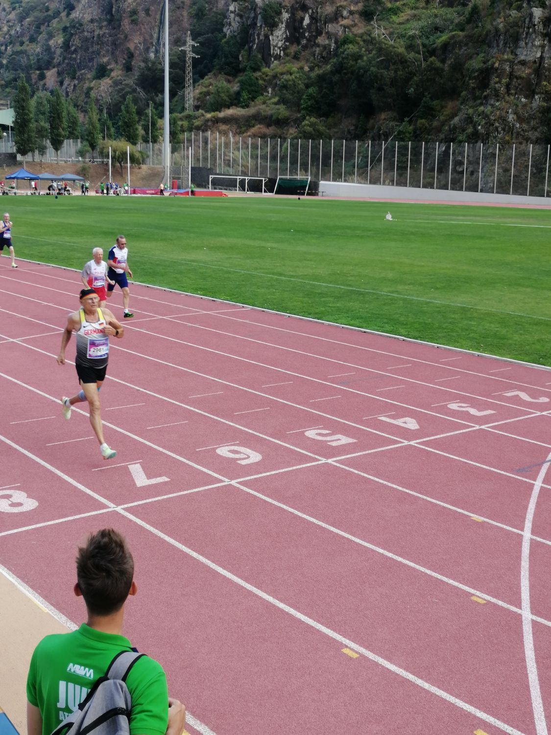 Erna Antritter (TV Biberach) war als einzige W90-Starterin in den Würfen auf Madeira dabei. Umso bemerkenswerter, dass sie den Weg auf sich genommen hatte und immer noch an den Start geht. Insgesamt tat sie dies sieben Mal und wurde mit sieben Goldmedaillen ausgezeichnet. Neben Kugel (4,30 m), Diskus (7,52 m), Speer (7,49 m), Hammer (12,72 m) und Gewicht (4,55 m) sowie Wurf-Fünfkampf (2.206 Pt.) rannte Erna Antritter über 100 Meter 37,66 Sekunden – als erste Über-90-Jährige in Deutschland und somit zu einer neuen Deutschen Bestleistung.