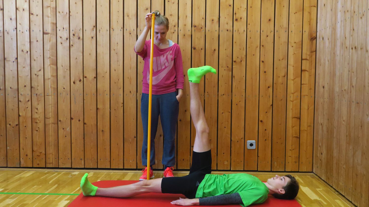 Von den Landestrainer/innen, von denen immerhin zehn bei ihrer jeweiligen Disziplingruppe dabei waren, wurden nicht nur die aktuelle Leistungsfähigkeit abgetestet, sondern auch Beweglichkeit und Stabilität, die koordinativen Fähigkeiten und die Lerngeschwindigkeit und -Bereitschaft. Und das Ganze wurde noch abgeglichen mit dem Stand der körperlichen Entwicklung: Von 1,45 m bis 1,82 m Körpergröße war bei den Jungs zum Beispiel alles dabei!