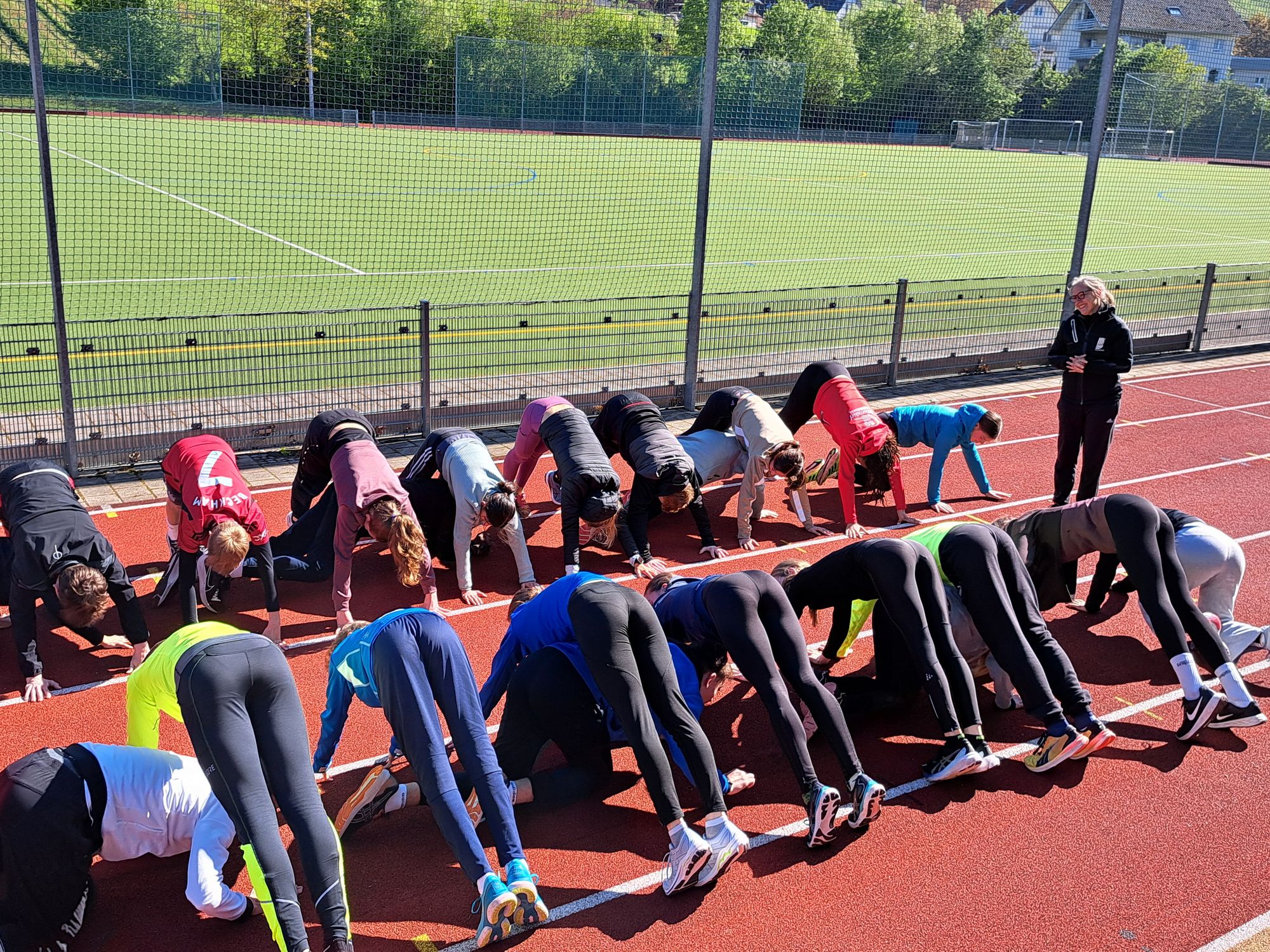 Mit kurzen Aufenthalten in der Halle zum Spielen, Mobilisieren oder zum Sprungkrafttraining war es dennoch auszuhalten, so dass vom Techniktraining zur Wettkampfvorbereitung doch das meiste durchgeführt werden konnte. Wettkampfsprünge und Starttraining mit Jennifer Klein, Cathleen Tschirch und Volker Zahn für die Sprint-Springer, Schnelligkeitstraining und verschiedene Ausdauerformen für die Läufergruppe unter Christoph Thürkow standen ebenso auf dem Programm wie diverse Tipps zur Regeneration und zur weiteren Förderung durch die Leichtathletik Baden-Württemberg. Die anspruchsvollen Landeskadernormen haben eine Hand voll der Athlet:innen schon kurz nach Saisoneinstieg in der Tasche.